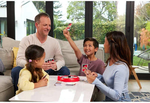 • Players take turns playing their UNO cards, but when the spin card is played, they spin the wheel and follow the instructions