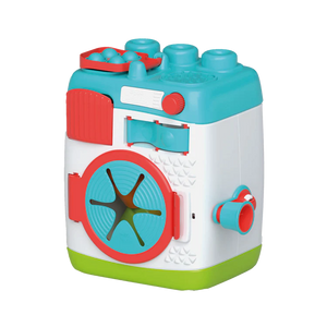 Sensory fun meets imaginative play from Clemmy with this iconic washing machine activity toy. Turn the side handle to spin the blocks, bringing a familiar household appliance to life through hands-on role play. Comes with 5 soft Clemmy blocks - perfect for squeezing, stacking, and safe chewing. Made from 100% safe, dishwasher-friendly materials for easy clean-up and peace of mind. Part of the Clemmy Touch & Play sensory toy range - discover the full collection!
