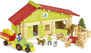 Jeujura Constructions building sets have a long tradition as one of the classic French toys. It offers a series of thematically dedicated to cottages, houses and farms, as well as the Wild West and the Middle Ages. They can be freely combined with each other, and a range of accessories, figures and vehicles are also available for many of them. They are made in France from solid beech and pine wood of French origin. The parts are treated exclusively with water-based paints and varnishes. Each set is packaged in a practical cardboard case printed with plant-based inks, and the package includes easy-to-understand instructions.