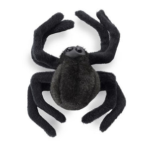 Arachnophobes won't mind the whimsical Mini Spider finger puppet. Featured in all black this not so scary creature has gangly long legs, a bulbous abdomen, and fangs on a leatherette face with big beady eyes.
