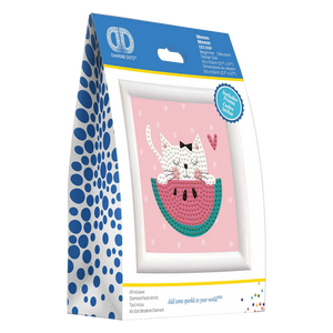 The Mmmm with Frame kit by Diamond Dotz includes a printed canvas coated with high-quality reusable adhesive and 361 pre-sorted round diamonds, offering partial coverage in a fun design. The kit also includes a plastic frame, an ergonomic stylus, a sorting tray, wax applicator, and detailed pictorial instructions. Designed for beginners, this kit delivers a straightforward, playful crafting experience.