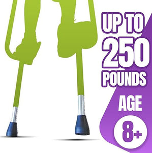 • These Walkaroo XTREME! Stilts are engineered with an easy balance design. The unique ergonomic "S" bend in the upper portion making the poles rest comfortably behind your shoulders for hours of fun. Equipped with durable padded under arm foam and adjustable foam handles that add comfort, grip and safety.