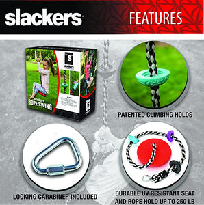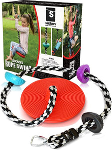 The colorful swing is easy to install. Our polyester rope includes a specially designed steel carabiner for quick attachment to your Ninjaline slackers.