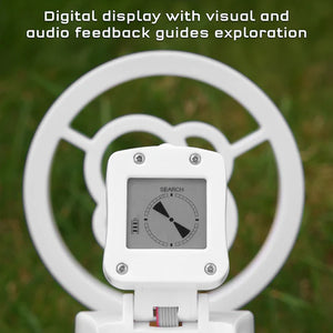The integrated digital display provides visual feedback as you home in on a metal object and emits a clear “beep” when you find your mark. Quickly and easily adjust the angle of the metal detector to explore between rocks, under bushes, and other hard-to-reach places. With two handles of different lengths and a lightweight design, this is the perfect exploration tool for kids (and adults!) of all ages.